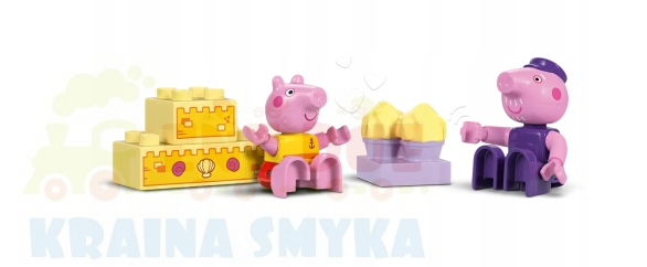 Zestaw zawiera figurki Peppy i dziadka, pływającą łódkę do zbudowania i mnóstwo akcesoriów inspirujących do wymyślania historii